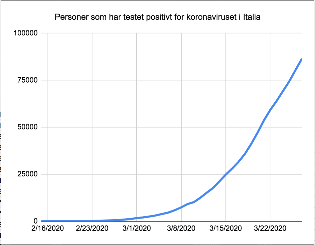 Det totale antallet som har testet positivt, er nå 86.498, hvilket er 5959 flere enn for ett døgn siden, en økning på 7,4 prosent. Den statistiske utviklingen dag for dag ser dermed slik ut: