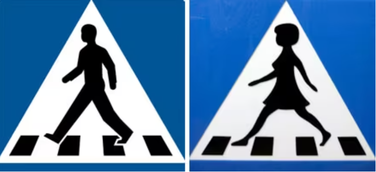 Allerede i 2008 dukket likestilte skilt for fotgjengerfelt opp i enkelte kommuner i Sverige.