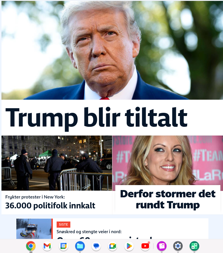 Norske medier gasser seg i nattens store nyhetssak, tiltalen mot president Donald J. Trump. Så vidt vi har kunnet se har ikke noen medier gjort selvstendige nyhetsvurderinger på det som utvilsomt er en av de største rettsskandalene i amerikansk historie. Hunter Biden i samme sak er for eksempel ikke å finne i noen norske nyhetsmedier siste døgn, med ett lite unntak.