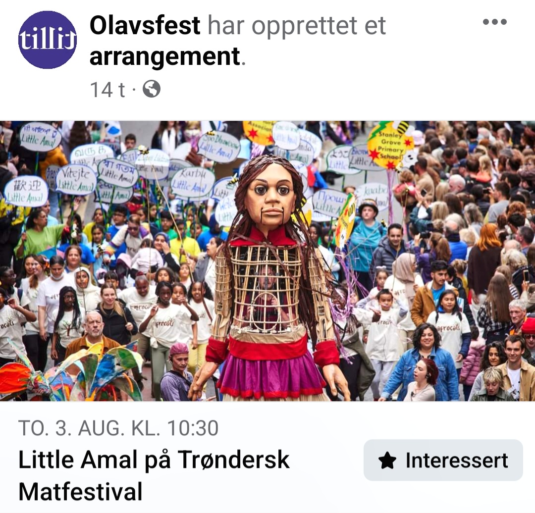 Fredag vil muslimen Masud Gharahkhani åpne årets Olavsfest i Trondheim, etter at muslimen Seyran Ates har ledet pilegrimsprosesjonen inn mot Nidaros, men hovedattraksjonen er visstnok den syriske flyktningdukken Amal. Bare katolikkene synes å konsentrere seg om å feire Hellig-Olav på olsok.