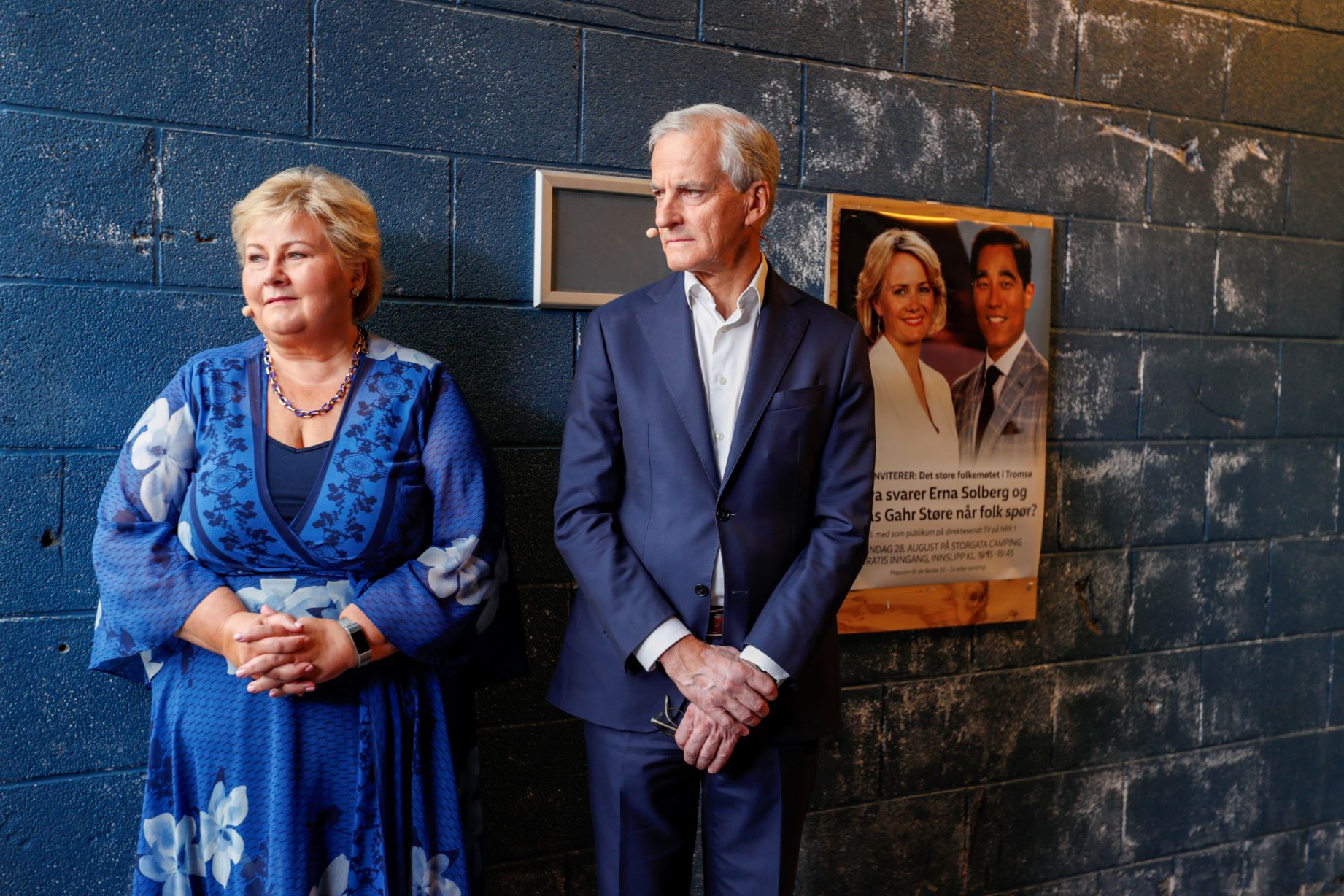 Erna Solberg (H) og Jonas Gahr Støre (Ap). Foto: Rune Stoltz Bertinussen / NTB