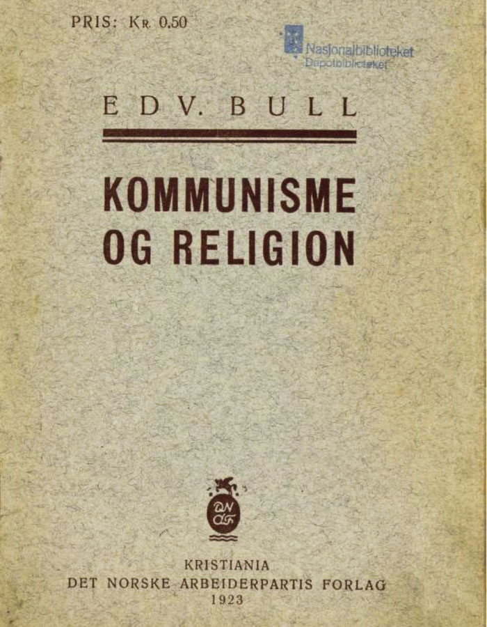 Heftet «Kommunisme og religion» av professor Edvard Bull ble utgitt i 1923. Skjermdump.