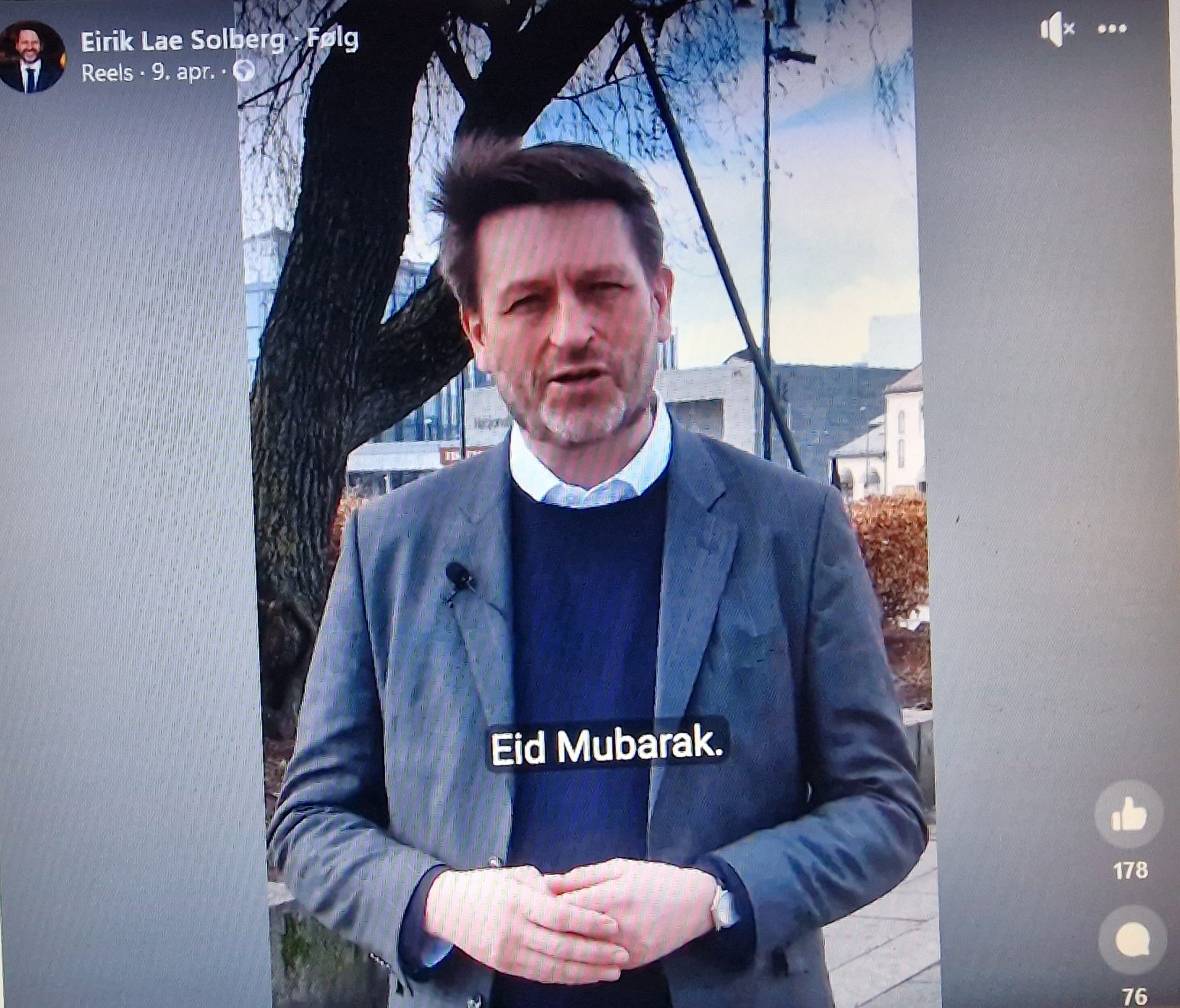 «Nå er det endelig tid for den etterlengtede og store festdagen Eid», sa Lae Solberg i sin videohilsen, og neglisjerte de 5.3 millioner ikke-muslimene i Norge. Arabisk kan han også.