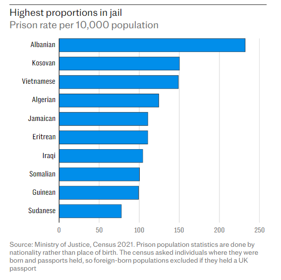 Den britiske avisen The Telegraph har gjort omfattende analyser av krimstatistikk i Storbritannia og viser frem de store forskjellene mellom ulike nasjonaliteter.