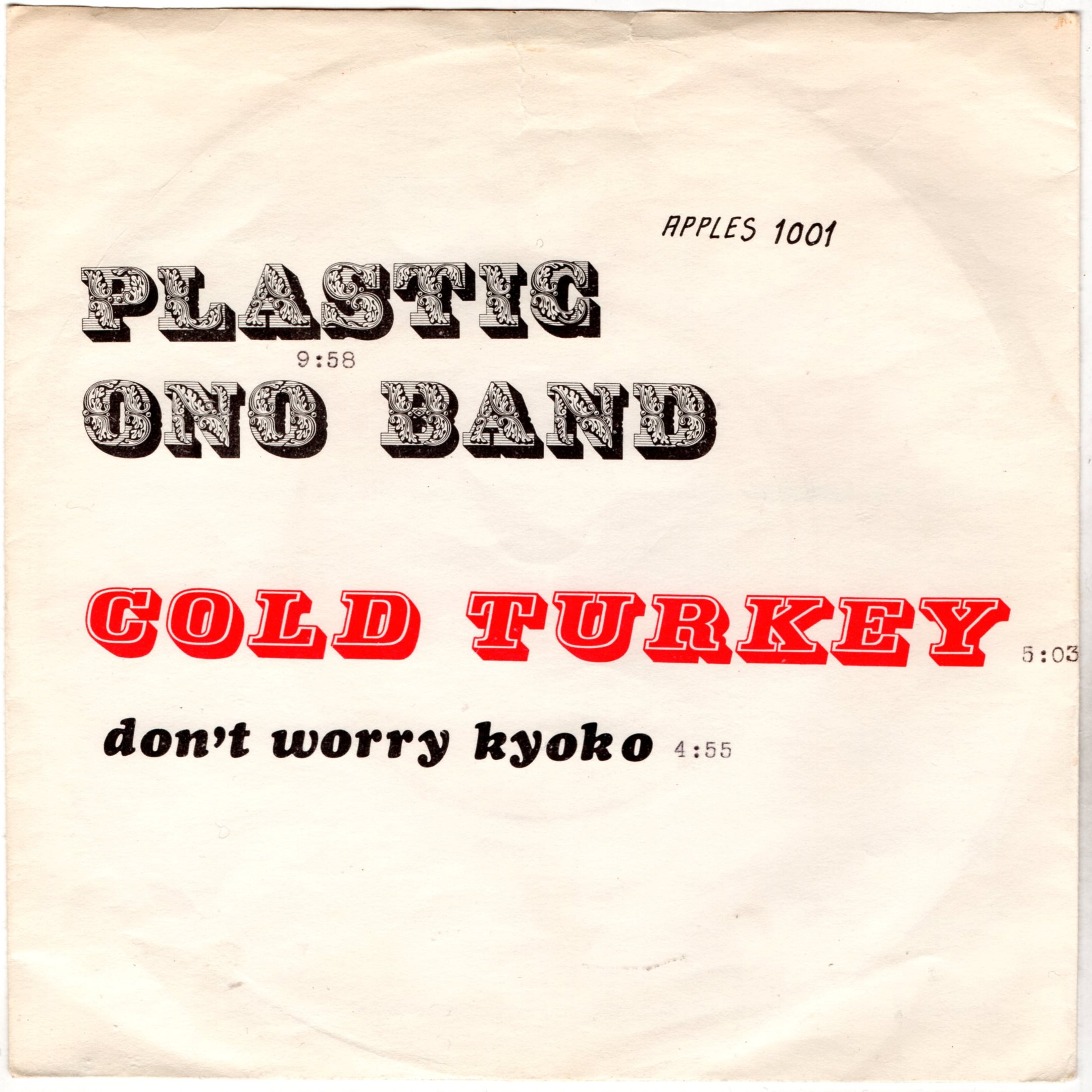 Denne platen var det sannelig ikke mange som likte. Jeg måtte slåss for å redde den fra knusing, og klarte aldri å få spilt mer enn 17 sekunder på fester. «Cold Turkey»-fans var sjeldne i 1969. (Cover; Apple Corps)