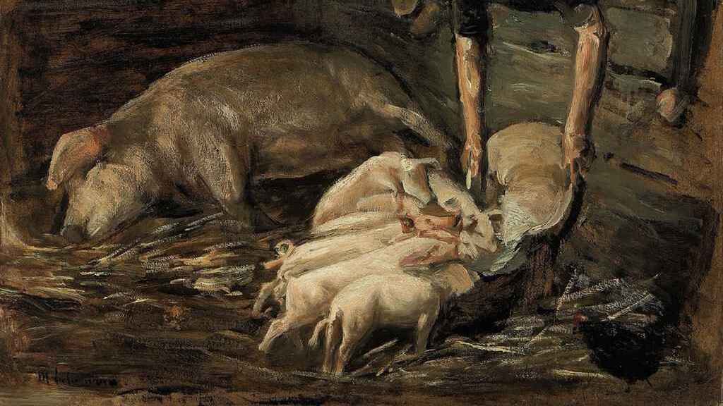 Max Liebermann (1847-1935). Olje på panel, 49,8 x 64,4 cm, privateie. Tysk titel: Schweinekoben, Wochenstube, som omtrent tilsvarer Grisebinge. Bildet ble sist observert ved auksjon hos Christie’s i London den 10. februar 2011, der tilslaget falt ved GBP 55,250, en god del over utropsprisen, som var GBP 35,000. Det virker ikke som om Max Liebermann, […]