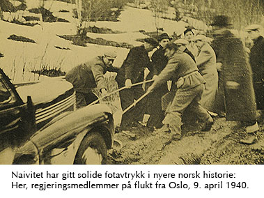 En øredøvende funksjon av norsk naivitet kom marsjerende taktfast opp Karl Johans gate i hovedstaden med tyske uniformer, trommer og basuner i front, 9. april 1940. Som et kjempesjokk for de fleste gode nordmenn og deres toneangivende politikere. Dagen før, 8. april, hadde Stortinget i ekstraordinære møter brukt det meste av tiden på å diskutere reaksjoner overfor Storbritannia på grunn av britenes minelegging av norskekysten! Det brukne gevær var nemlig et betydelig politisk symbol på mange jakkekrager da krigen kom, og Arbeiderpartiets fanebærer satte nøytralitetsprinsippet høyt. Det viste seg imidlertid noe anstrengt i politisk praksis etter den tyske hornmusikken nedover Karl Johans gate. Mobiliseringsvåpnene lå innsauset med smurning og manglet for en stor del sluttstykker da krigen brøt ut, i følge Bjørn Bjørnsen i ”Det urolige døgnet”. Men her er det fortsatt mye uskrevet historie. Hovedtrekkene i resten av krigshistorien burde de fleste kjenne. Men veldig mange bryr seg ikke noe om denne historien heller. Naiviteten i dette er farlig.