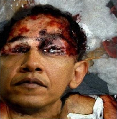 Den Amnestyrelaterte gruppen Cageprisoners, som ledes av den tidligere Guantanamo-innsatte og Talibantilhengeren Moazzam Begg og bla bidrar til å offentliggjøre tekstene til hatpredikanten Anwar al-Awlaki, har publisert et manipulert bilde som viser det blodige liket av Barack Obama, sammen med en tekst som beskriver et fremtidig attentat på presidenten.