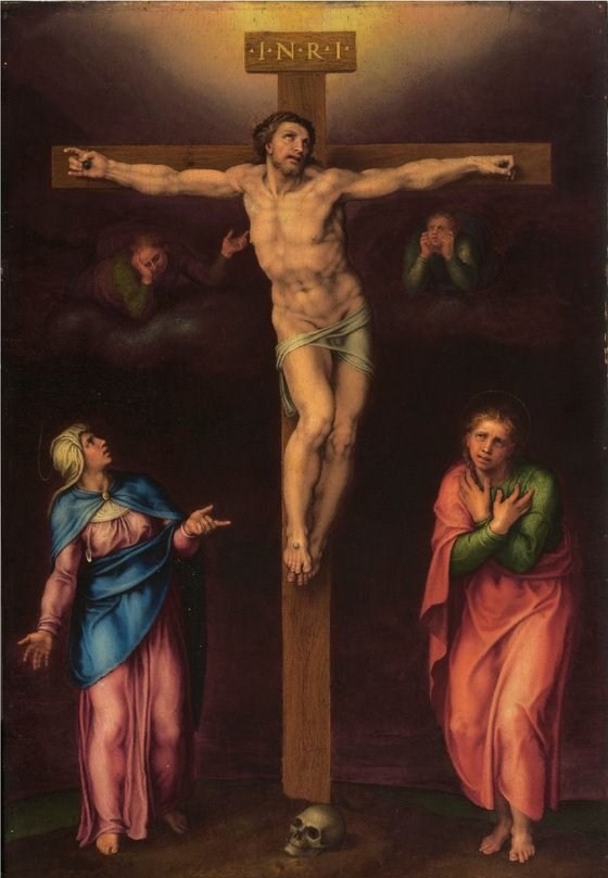 Man har antatt at dette bildet kan være en kopi av et senere tapt maleri Michelangelo muligens laget etter modell av den ovennevnte skissen mesteren hadde tegnet til sin venninne Vittoria Colonna, som han brevvekslet med og skrev sonetter til. For et ulærd øye ser de to maleriene forbløffende like ut, naturligvis med unntak av den ekstra sørgende, som vel er Maria Magdalena. Kan dette maleriet også være autentisk?
