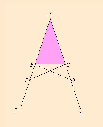 I en likebent trekant er vinklene ved grunnlinjen like store; og hvis de like store rette linjene forlenges, blir vinklene under grunnlinjen like store.