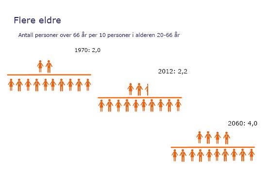 Den største skyen i solskinnsbildet er det vi kan kalle eldrebølgen. Regjeringen unnslår ikke at forsørgelsesbyrden vil øke, dvs. det blir flere eldre å ta hånd om for hver yrkesaktiv: