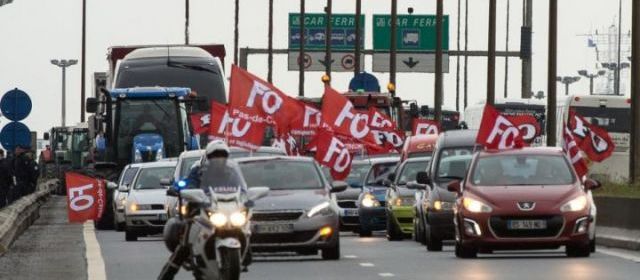 Idag ble det gjennomført en kjør-sakte-aksjon i Calais med politi, bønder, handelsfolk og lokale innbyggere.
