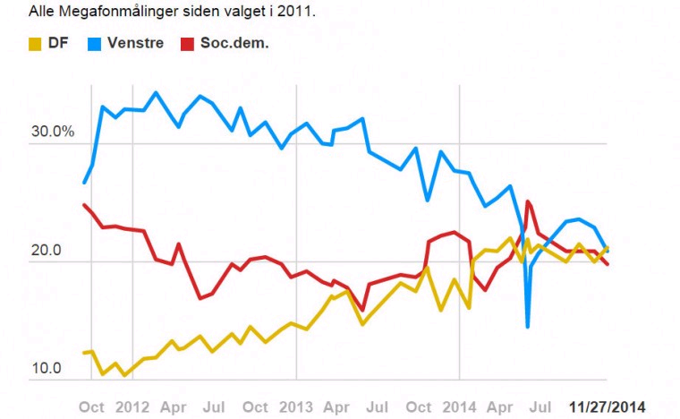 På den siste politiske meningsmålingen er innvandringskritiske Dansk Folkeparti for første gang Danmarks største parti.