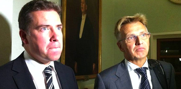 ”Huvudansvariga myndighetschefer för invandringsadministrationens tillkortakommanden och de konsekvenser det får för Sverige och dess befolkning.” T.v. Mikael Ribbenvik, ställföreträdande generaldirektör och operativ chef för det svenska Migrationsverket. T.h. Anders Danielsson, Generaldirektör. Foto Joachim Kepner