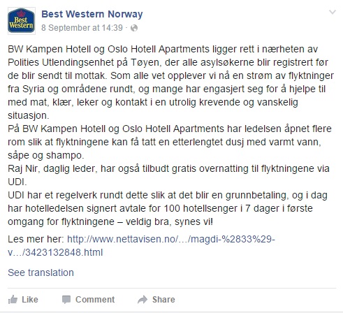 Ifølge Røde Kors så har UDI åpnet for akuttinnkvartering av migranter hos Best Western Hotell på Kampen, et drøyt steinkast unna PUs lokaler på Tøyen.