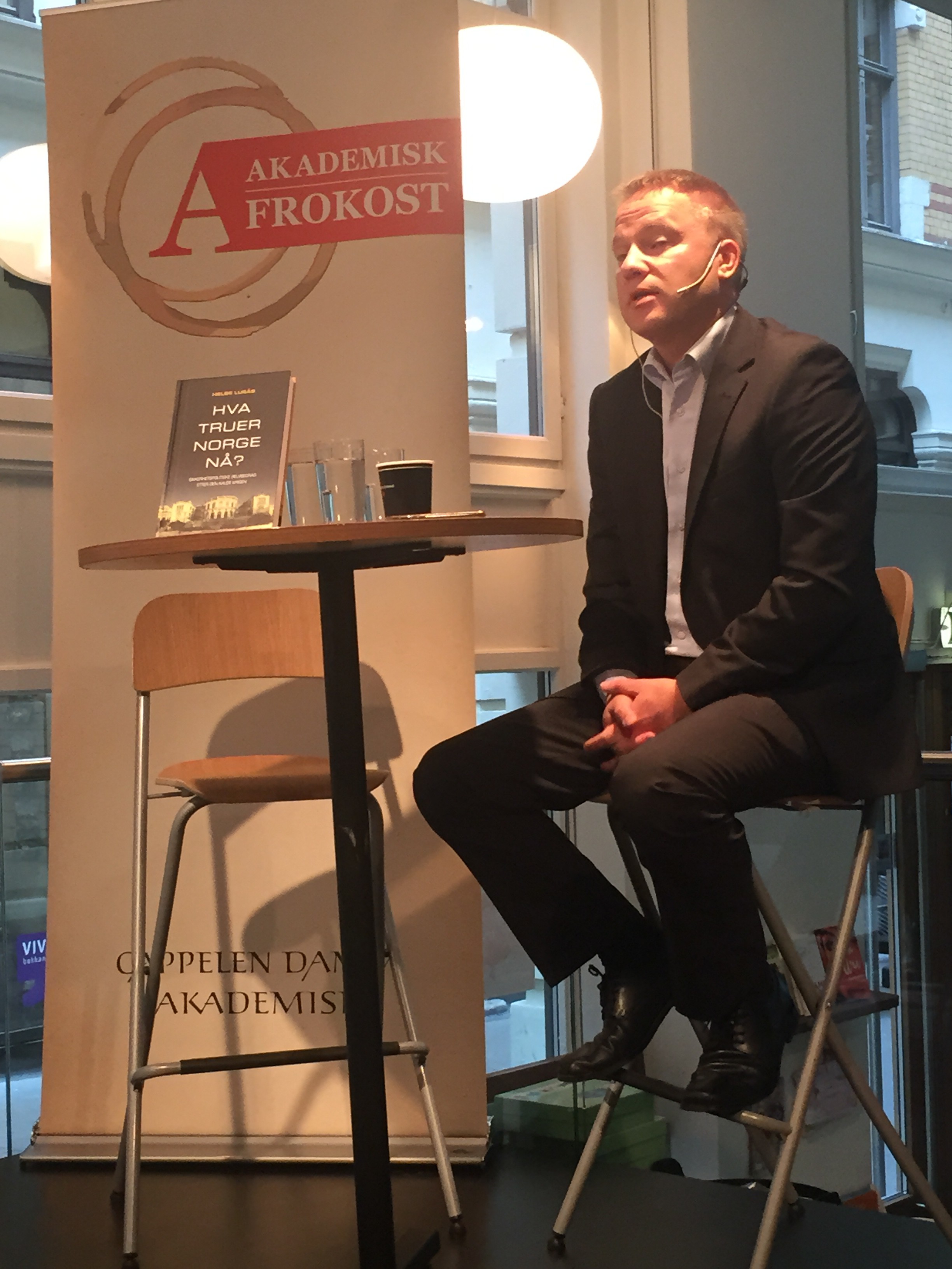 Tirsdag presenterte Helge Lurås sin bok Hva truer Norge nå? i Cappelen-Damms fine lokaler i Akersgata.
