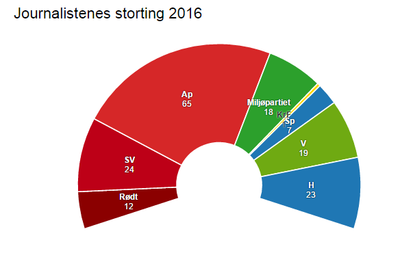 – Noen stemmer Miljøpartiet De Grønne, men ellers er mønsteret som det har vært i alle år. Skribenter har som vane å helle mot venstre. Det er vanskelig å ha en konservativ holdning når du hele tiden som journalist er på jakt etter det nye, og bruker mye av tiden din på nye trender, mener han.