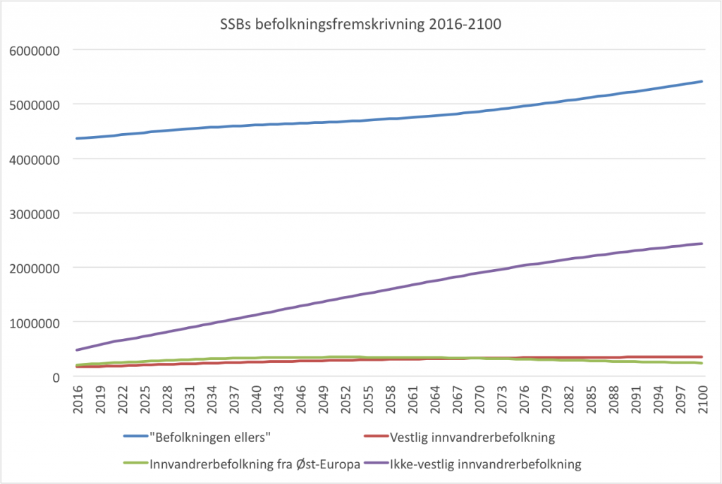 Statistisk sentralbyrå (SSB) la i dag frem sin siste prognose over befolkningsutviklingen i Norge utover i århundret. I SSBs egen presentasjon av tallene er innfallsvinkelen at landets befolkning vil øke fra fem til seks millioner mennesker i rekordfart – fra 2012 til 2030, altså på under 20 år. Som vanlig er innvandringen det største usikkerhetsmomentet […]
