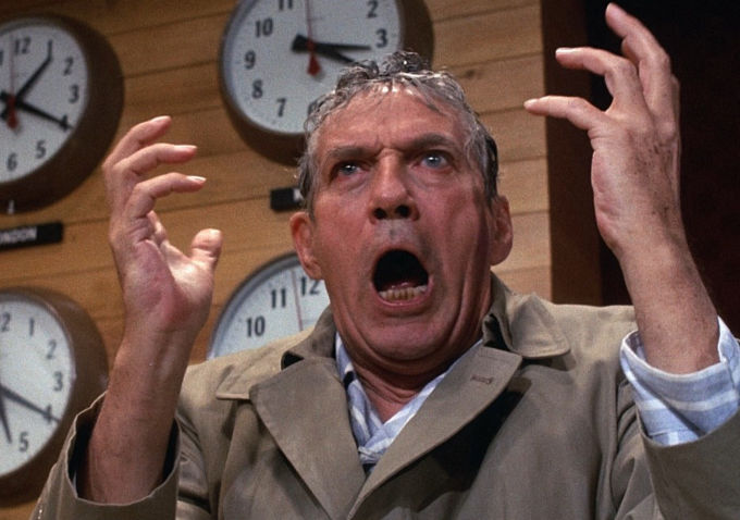 Hvorpå overalt i USA menneskene åpner vinduene i sine leiligheter og skriker ut i natten, «Jeg er forbannet som faen og jeg kommer ikke lenger til å finne meg i dette!»