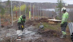Det nye grensegjerdet på Storskog er under bygging