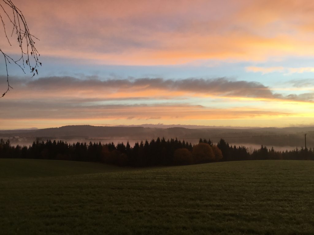 Bildet: Morgen over Eidsvoll. En ny dag. Høst med farver på det helt store lerret. Det skifter på noen sekunder før det er borte, men synet sitter i deg. Det er sånt vi lever på.