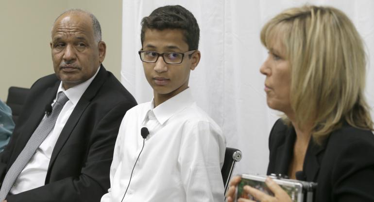 Gutten ble kjent da han møtte på skolen med en klokke. Skolen fryktet bombetrussel og tilkalte politiet. Men da det viste seg at gutten hadde tatt med klokken for å vise frem hva han hadde laget, ble han hyllet som et geni i liberale medier. Imidlertid viste det seg at klokken var et byggesett. I den forbindelse hadde noen medier kritiske kommentarer til motivet for å ta med klokken.
