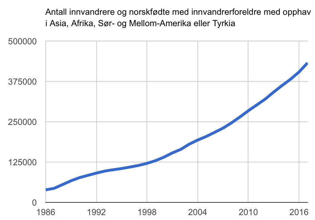 Av figuren som illustrerer tallene, ser det ut til at den ikke-vestlige innvandrerbefolkningens størrelse for tiden øker eksponentielt: