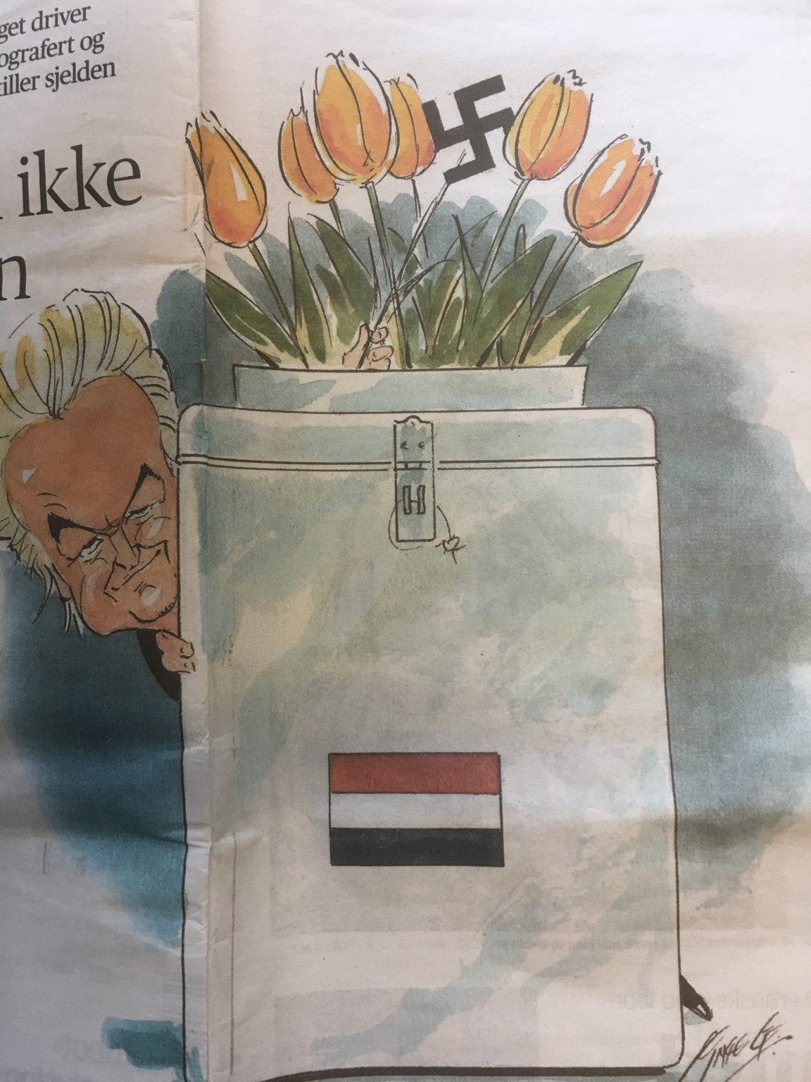 Det var en illustrasjon til Gunnar Kagges kommentar med tittelen: Når elefanten ikke en gang vil inn i rommet. Det må ha vært en freudiansk slip of the pen, for Wilders representerer den elefanten mediene og politikerne ikke vil snakke om: islam. Når de angriper ham angriper de elefanten de later som ikke er der.