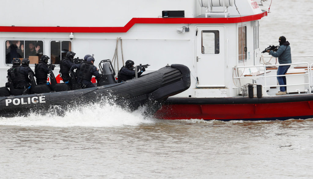 Themsen i London ble søndag åsted for en iscenesatt terroraksjon hvor scenarioet var at en turistbåt ble kapret av terrorister. Hundrevis av politi deltok i anti-terrortreningen hvor de skulle redde desperate gisler og avvæpne seks «terrorister». Ambulansetjenesten, Redningsstjenesten og brannvesenet deltok også i øvelsen.