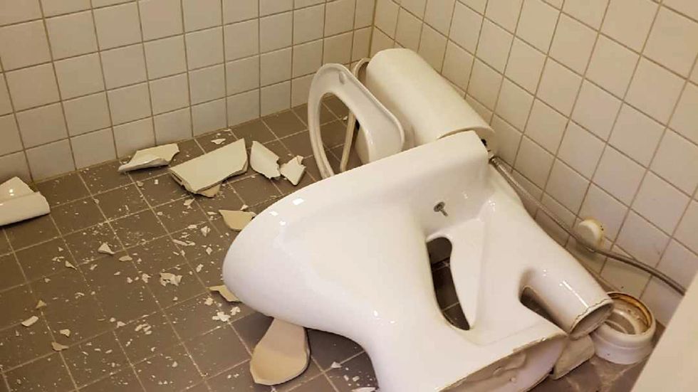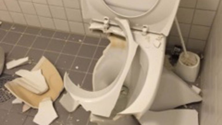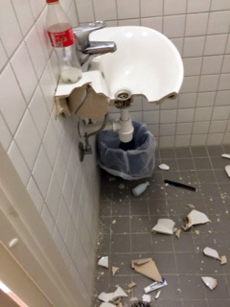 Bildene politiet har tatt viser hvordan flere toaletter er knust og hvordan sofaer og stoler er revet opp og slengt i en haug. Ifølge VG gikk opprøret lørdag kveld også hardt ut over bad, TV-er og fellesarealer.