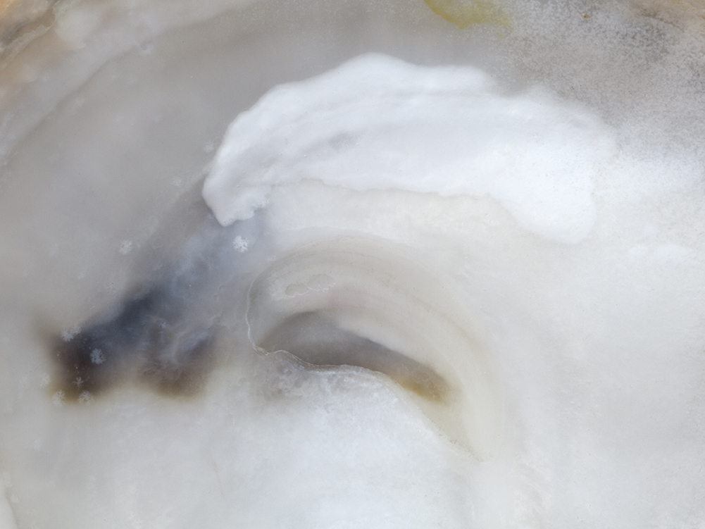Himmelens krefter har sluppet løs. Hva som er himmel og hva som er hav vites ikke lenger. Opprørt sjø eller orkanskyer. I disse urolige og tragiske tider er det greit å filosofere litt over innsiden av et østersskall. De krefter og den bestemmelse som har formet noe så tilsynelatende enkelt, vil forhåpentlig alltid forbli en gåte for oss. Men poenget er at det finnes et rolig sted i orkanens sentrum.