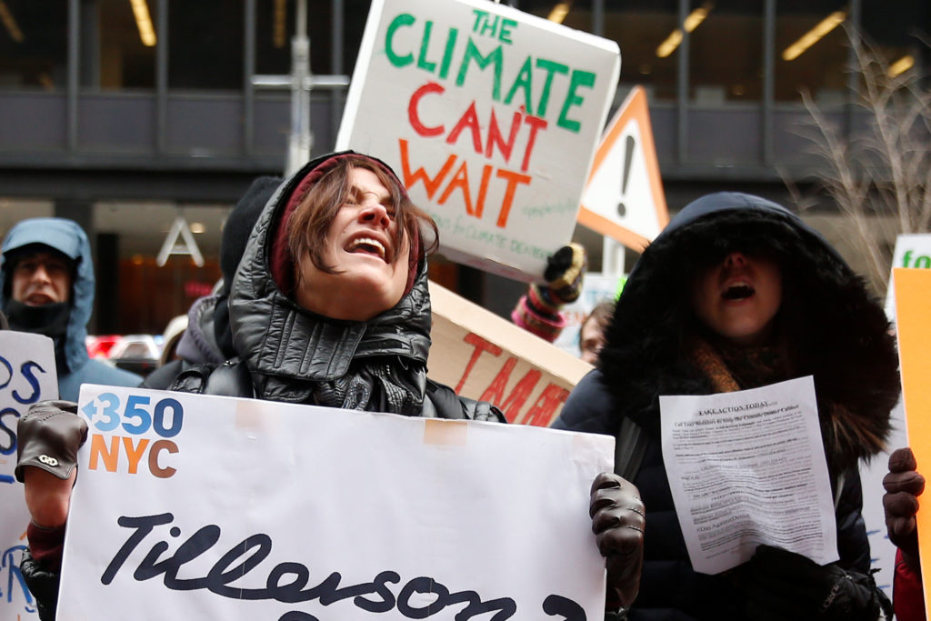 Klima og asyl tiltrekker seg en spesiell type mennesker. De har fått en kjærkommen hatfigur i Donald Trump. Her fra en demonstrasjon utenfor senator Dick Schumers kontor i New York 9. januar 2017. Foto: Shannon Stapleton / Reuters / Scanpix.