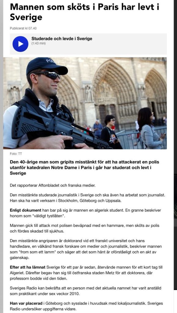SR.se: Mannen som sköts i Paris har levt i Sverige