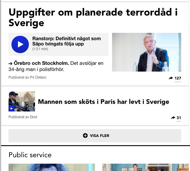 Samtidig som dette skrives legges denne saken ut som toppsak på sr.se: «Flera åtgärder för terrorbekämpning klara»