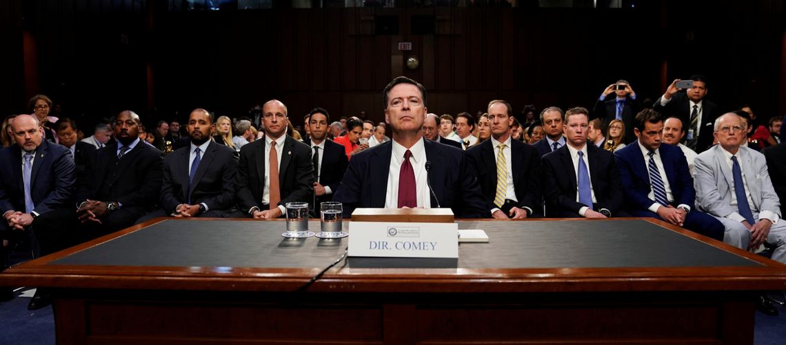 Eks FBI-direktør James Comey under senatshøringen 8. juni. (foto: Reuters/Jonathan Ernst)