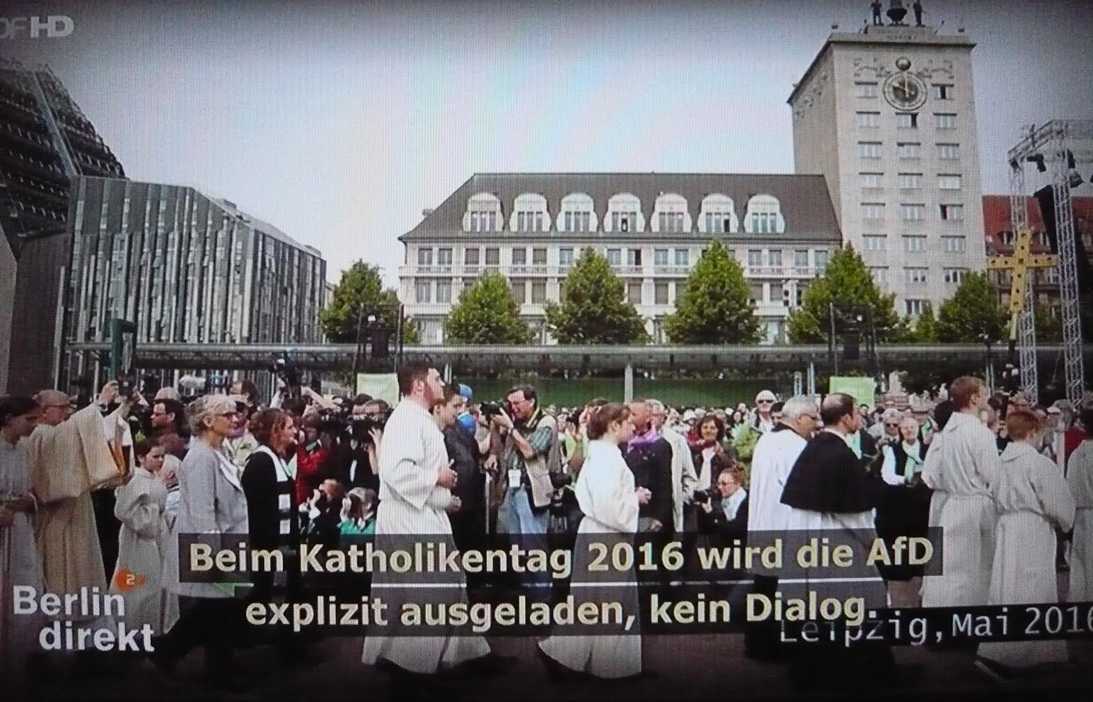 For å vise hvor «liberale» de likevel var, arrangerte Kirkemøtet – under voldsom kritikk fra de aller mest rettferdige, under ledelse av en prest fra Bonn og en kunsthistorier, som erklærte at Afd var «menneskeforaktende, rasistiske, homofobe og islamofobe», et konfrontasjonsmøte med AfD i en kirke. Der ble et enslig, kristent AfD-medlem irettesatt med utsøkt kristelig nedlatenhet av den selvsamme eiegode biskopen av Berlin. De fremmøtte, selverklært rause og tolerante kirkemøtedeltakerne blant kirkebenkene, kvitterte i god, kristelig dialog-ånd ved å bue ut den unge kvinnen da hun snakket.