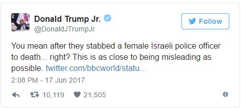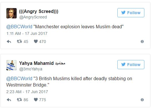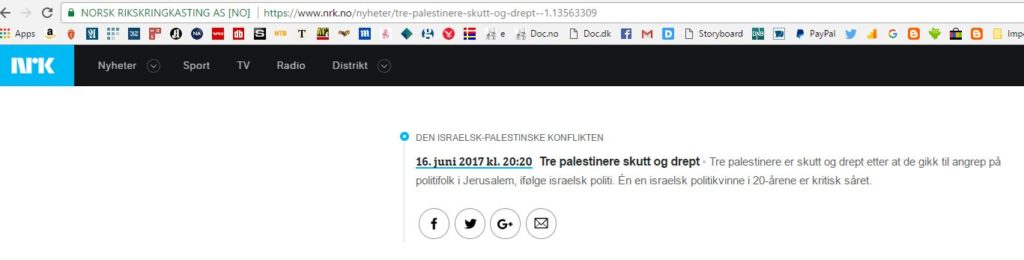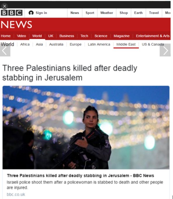 «Three Palestinians killed after deadly stabbing in Jerusalem», skriver BBC. Og får med det de tre palestinerne til å høres ut som ofre. For de mange lesere som kun skummer overskrifter er saken allerede ferdig. Men leser man litt mer om saken så ser man at de tre palestinerne knivstakk og drepte en israelsk politikvinne, Hadas Malika.