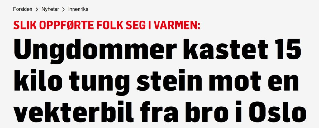 Vi skal kanskje ikke vente oss så mye fra gammelmediene. De tar ivrig del i slokningsarbeidet. Dette var TV2.no sin overskrift etter at noen slapp en 15 kilos stein fra en gangbro mot en bil: