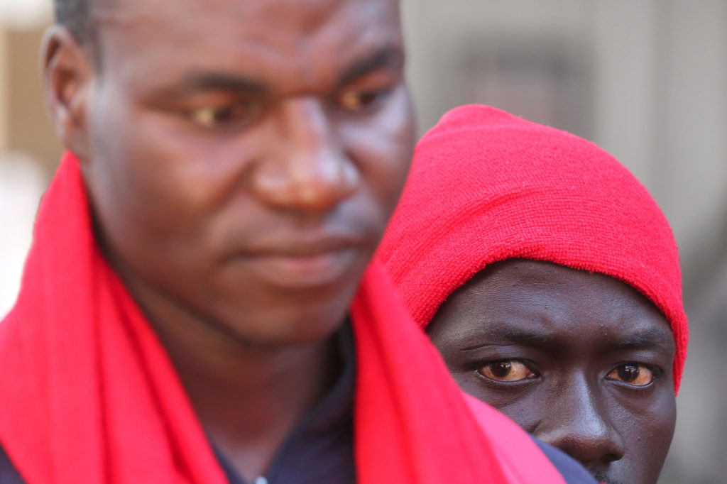 Migranter venter på å gå i land på havnen i Crotone fra skipet Vos Hestia tilhørende Save the Children den 21. juni 2017. Foto: Stefano Rellandini / Reuters / Scanpix.