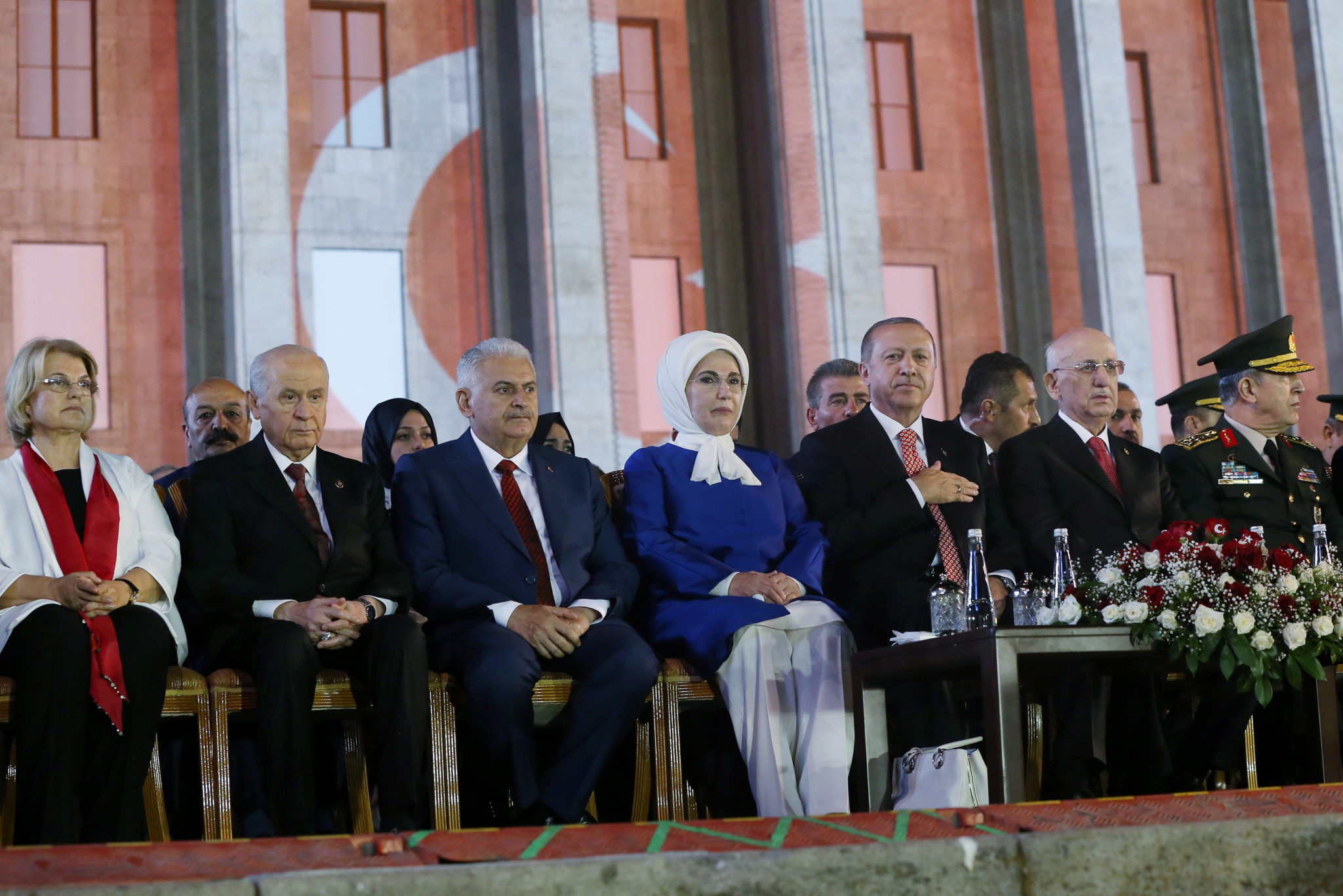 I en tale framhevet parlamentspresidenten Ismail Kahraman det tyrkiske folk som han sa hadde seiret over kuppmakerne i juli i fjor.