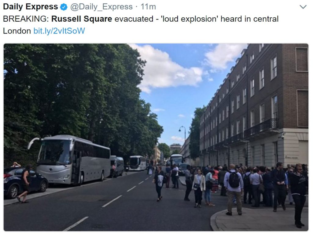 «Work place evacuated due to suspect package near Russell Square. Heard what I assume was a controlled explosion.»