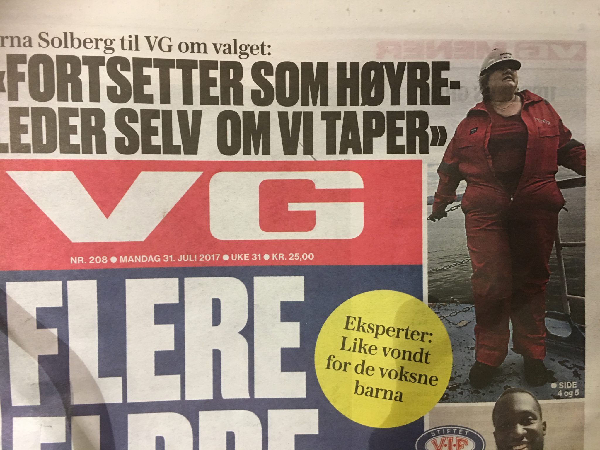 Javel, grei beskjed. Var det essensen av intervjuet? Det måtte man tro. Men i det jeg ser forsiden av VG ser jeg at VG har sett sitt snitt til å sende med et helt annet budskap:
