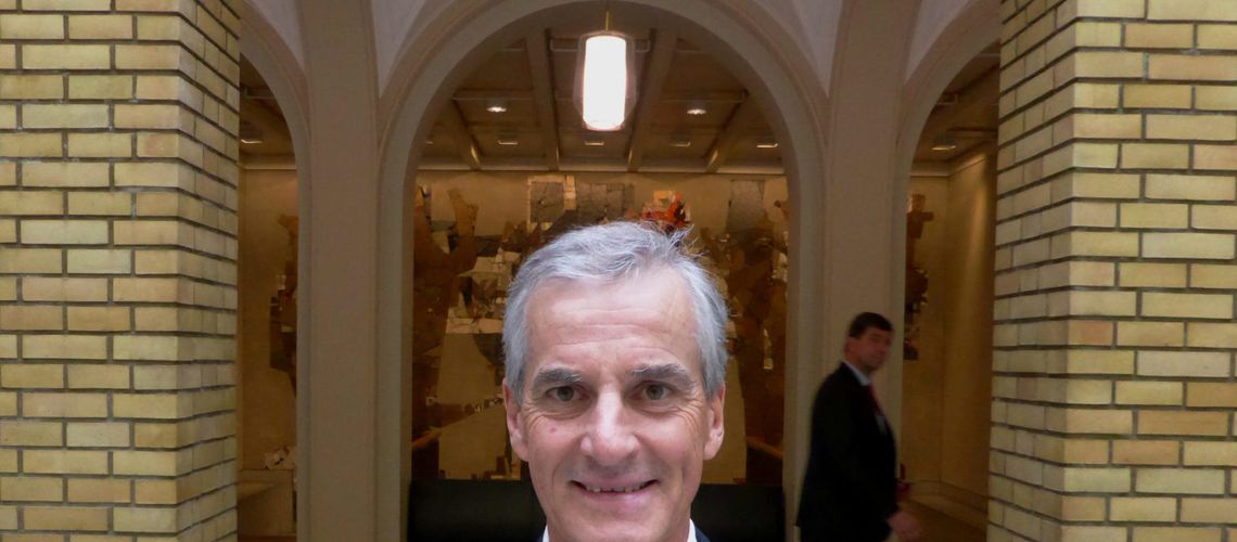 Arbeiderpartileder Jonas Gahr Støre smiler som best han kan. (Foto:Gwladys Fouche/Scanpix/Reuters)