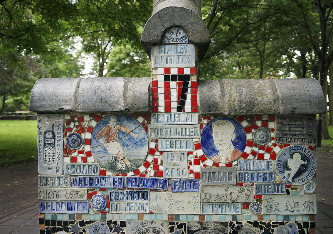 Stanley Matthews (1915–2000) var en av Englands mest feirete fotballspillere i sin aktive periode. På kirkegården I fødebyen Stoke i Midt-England har han fått dette minnesmerket. Det spesielle utseendet speiler byens egenerklærte status som verdens keramiske hovedstad. Denne industrien gikk på en smell i slutten av forrige århundre, og er ennå ikke kommet skikkelig til hektene. Matthews er den eneste engelske fotballspiller som er blitt adlet mens han levde. Han var aktiv på toppnivå til han var femti år.