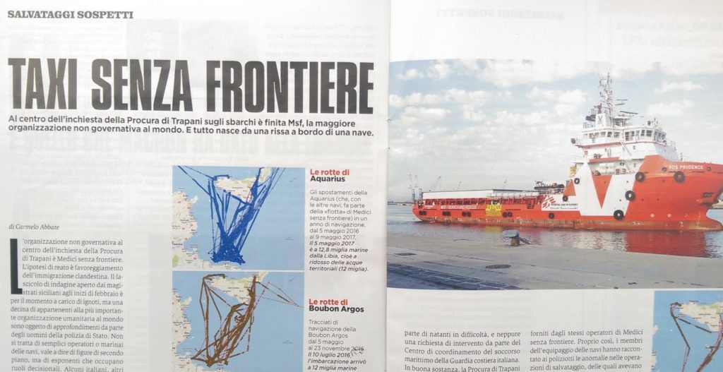 Allerede i vår var Leger uten grenser under etterforskning. Christian Skaug skrev om det 11. mai: Leger uten grenser etterforskes for menneskesmugling, med det italienske magasinet Panorama som kilde: