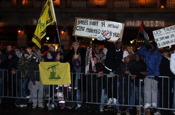 En demokrat må reagere på vold. Demonstrasjonen utenfor Stortinget 8. januar 2009 var en begivenhet som kaster skygger. Hizbollah-flagg, rop om at «Khaybar, Khabyar» kommer igjen. Hvorfor den korte hukommelsen? Denne hatretorikken er ikke blitt svakere. Tvert imot. Venstresiden og det politiske establishment står overfor et ubehagelig faktum når den skal bekjempe høyreekstremisme: Ytre høyre er antisemittisk og antikristelig. Men det er også venstresiden og deres allierte. Man kan ikke være prinsipiell bare når det passer. Foto: MIFF