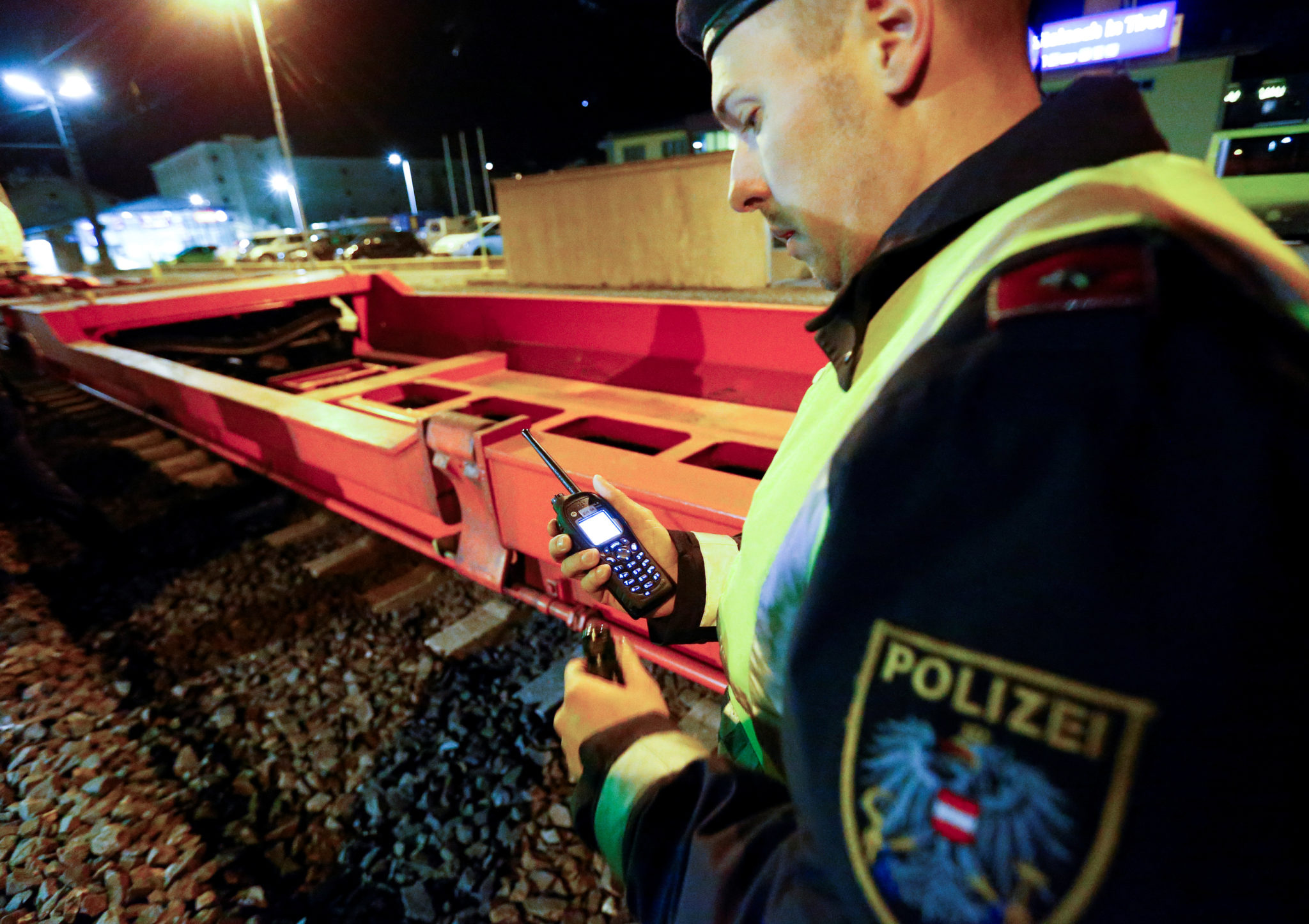 Østerriksk politi kontrollerer et godstog på stasjonen i Steinach am Brenner den 16. desember 2016. Foto: Dominic Ebenbichler / Reuters / Scanpix.