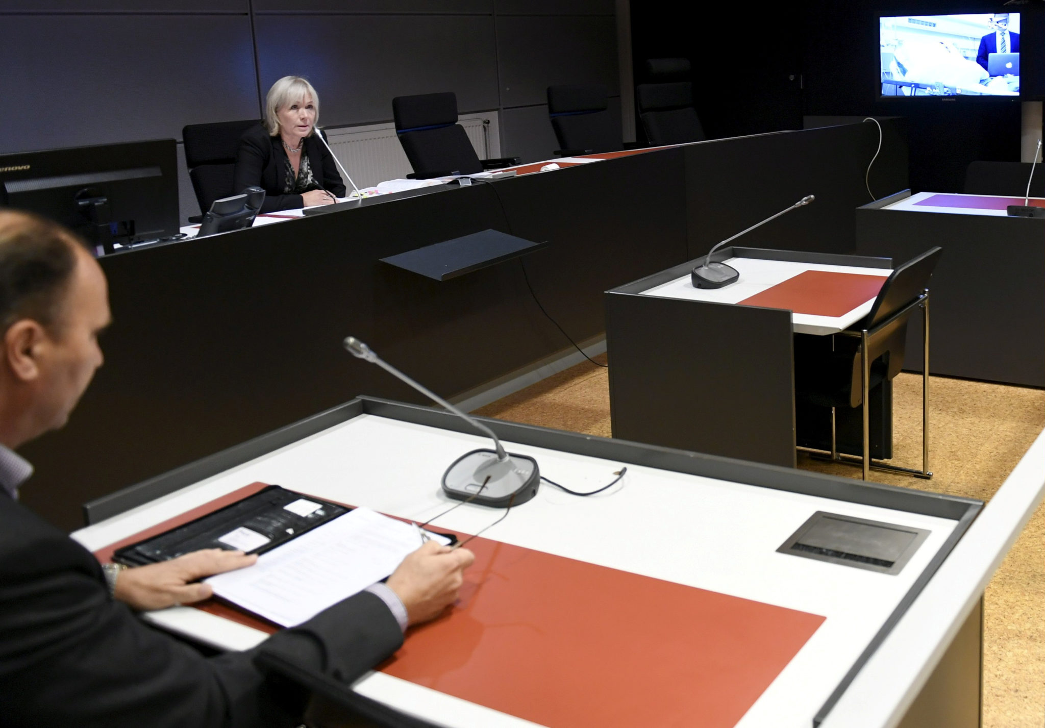 Den 18 år gamle marokkaneren Abderrahman Mechkah, hovedtiltalt i terrorsaken i Åbo, deltar i rettsmøte ved help av en videoforbindelse mellom domstolen og sykehuset den 22. august 2017. Foto: Martti Kainulainen / Lehtikuva / Reuters / Scanpix.