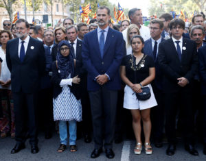 Spain’s King Felipe, PM Rajoy and Catalan regional president Puigdemonttake part in a march of unity after the attacks last week, in Barcelona, Spain