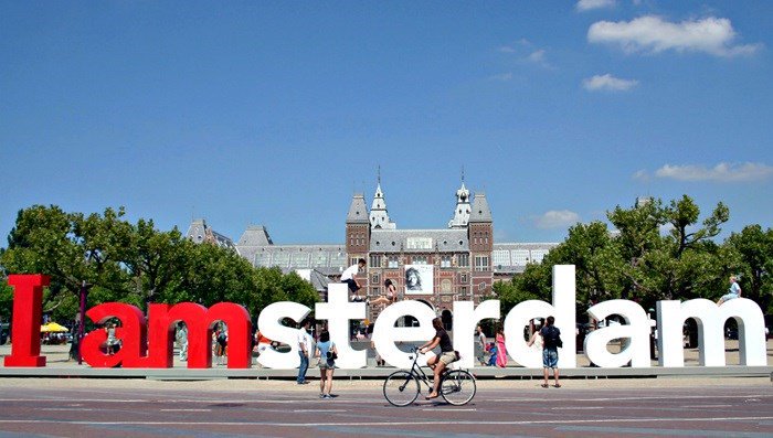 Logoen foran Rijksmuseum i Amsterdam er i virkeligheten sperringer, utført på en smart måte.